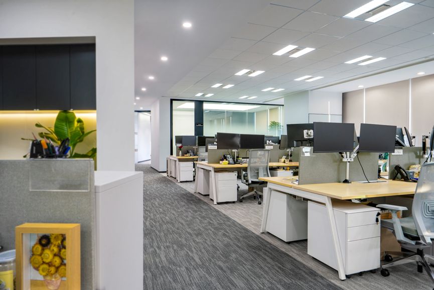 TMC羅賓升關(guān)心員工的身體健康,因此員工區也進(jìn)行了特別設計。每個(gè)工作臺配備了雙顯示器、人體工學(xué)椅和電話(huà)間,為員工提供了一個(gè)舒適、高效的工作環(huán)境。在辦公區周?chē)男蓍e區和咖啡區則為員工提供了放松休息的場(chǎng)所,提升了工作滿(mǎn)意度和工作效率。辦公區域四處都點(diǎn)綴著(zhù)公司文化的符號,使整個(gè)集體充滿(mǎn)活力。