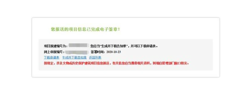 20、如確認成功,則會(huì )顯示以下提示,可下載告知單,留存報建編號及申報編號。